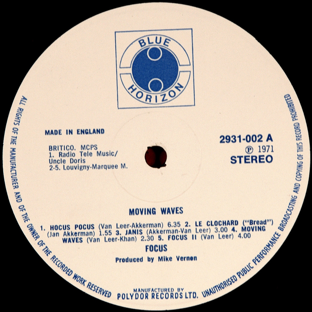 FOCUS-MOVING WAVES-1971-ОРИГИНАЛЬНЫЙ ПРЕСС 1971 UK-BLUE HORIZON-2931-002. Матрицы A-1/B-1. Редкий британский оригинал. Второй студийный альбом голландской рок-группы Focus.