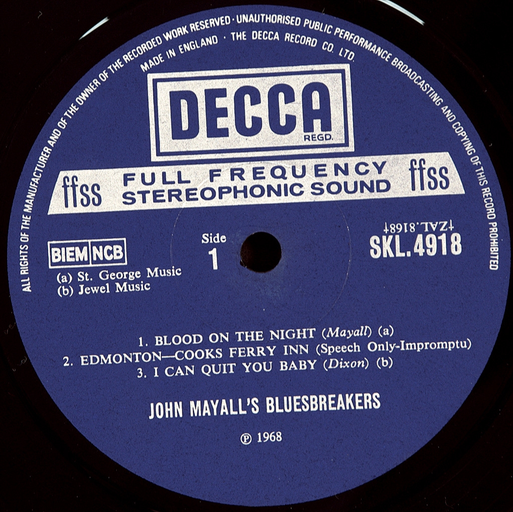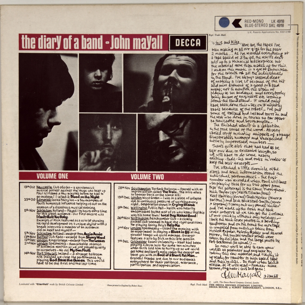 MAYALL, JOHN-DIARY OF A BAND( VOLUME ONE)-1968-ОРИГИНАЛЬНЫЙ ПРЕСС 1969 UK-DECCA-SKL.4918 . Редкое британское , очень раннее издание , культовых клубных записей мэтра блюза.