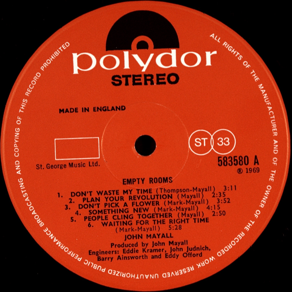 MAYALL, JOHN-EMPTY ROOMS-1969-ПЕРВЫЙ ПРЕСС UK-DECCA-5835808. Редкий британский оригинал гения блюз-рока.