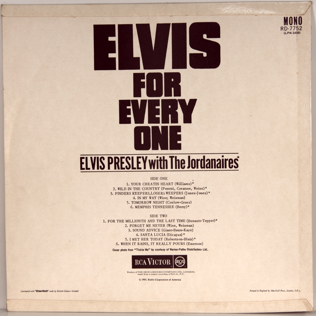 PRESLEY, ELVIS- ELVIS FOR EVERYONE-1965-ПЕРВЫЙ ПРЕСС (MONO) UK-RCA-RD-7752. Редкий британский оригинал короля рок-н-ролла.