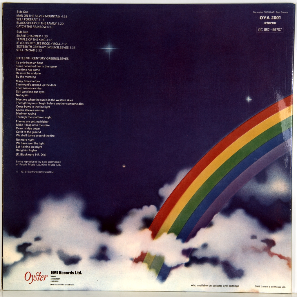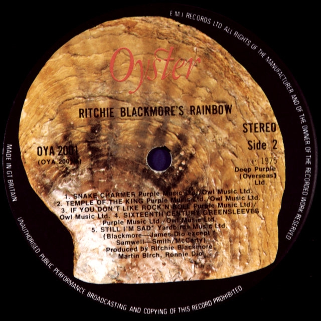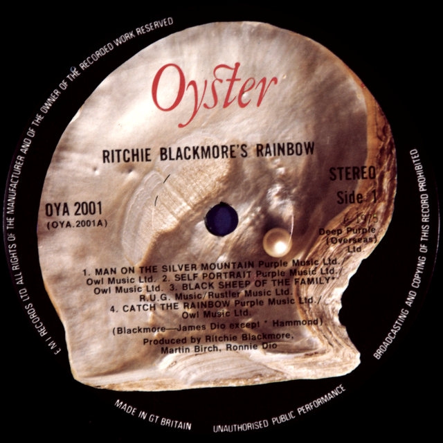 RAINBOW-RICHIE BLACKMORE'S RAINBOW-1975-Первый пресс UK-POLYDOR OYSTER- OYA2001 матрицы KENDUN A-1U/B-1U. Ritchie Blackmore’s Rainbow — дебютный альбом британско-американской группы Rainbow, вышедший в мае 1975 года. В чартах Британии этот диск занял 11-е место, в США — 30-е. Альбом являлся любимым для вокалиста Ронни Джеймса Дио, по его словам.