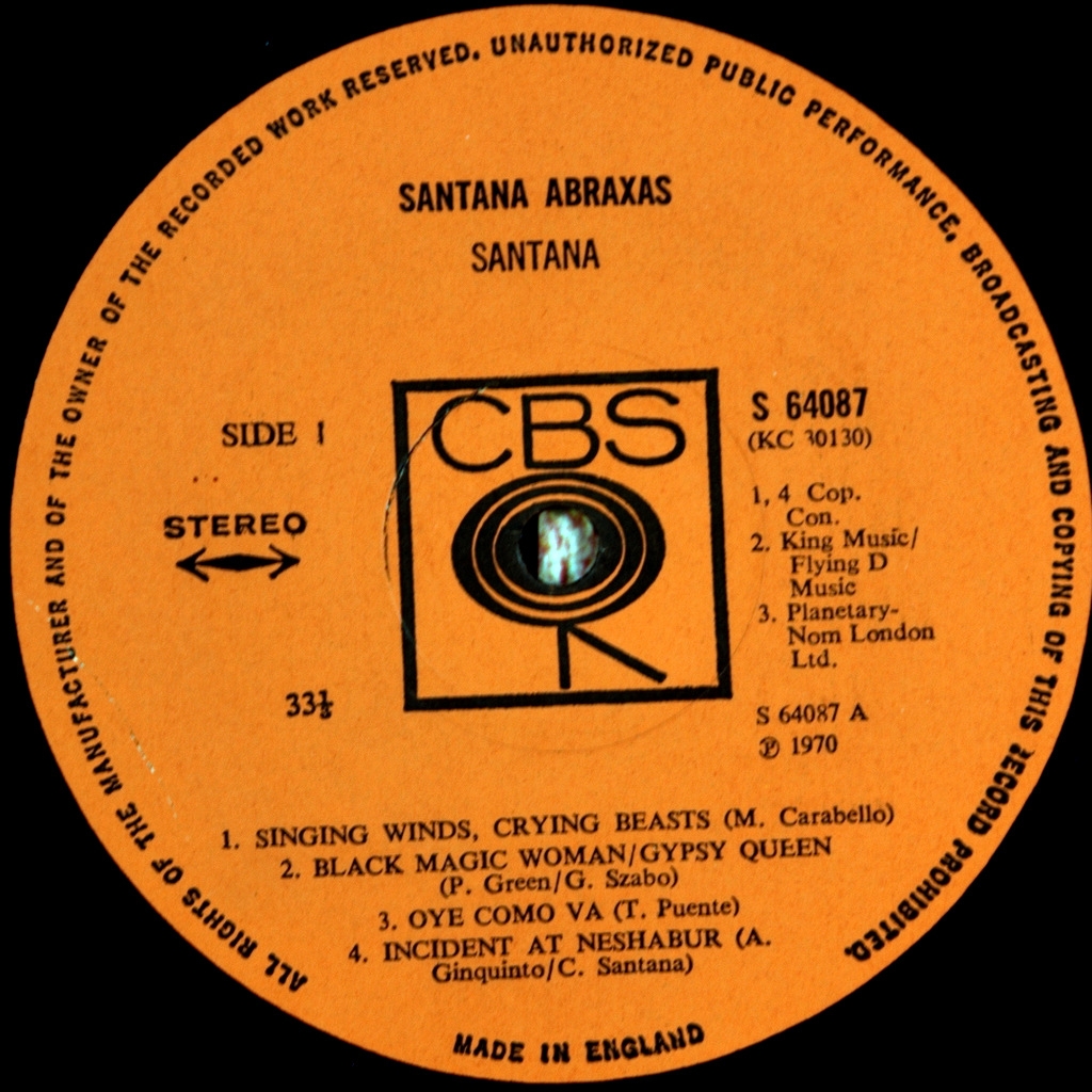 SANTANA-ABRAXAS-1970-ПЕРВЫЙ ПРЕСС UK-CBS номер S64087.Редкий британский оригинал второго альбома SANTANA.