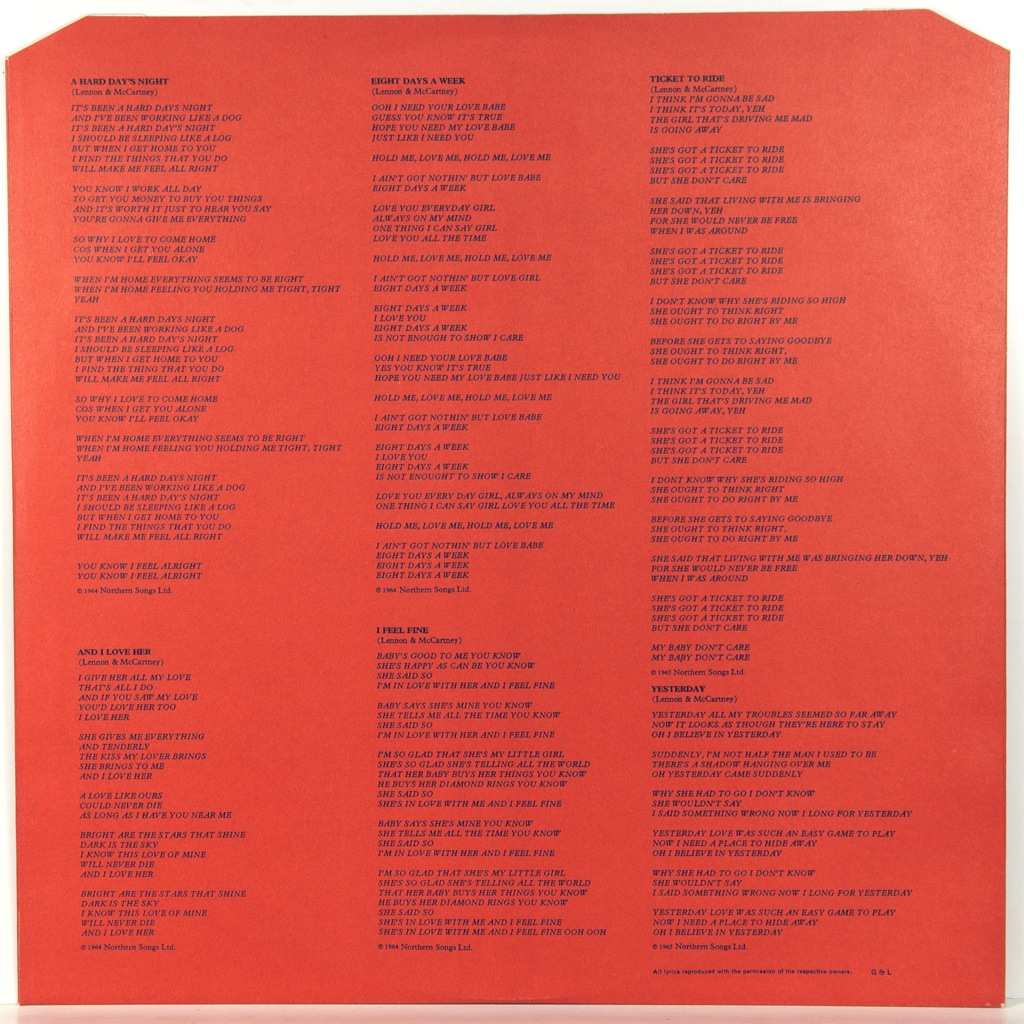 Сборник лучших песен группы 1962-66 годов. Первое издание было на черном виниле, позднее был выпуск на цветном виниле красного цвета.Виниловые пластинки в топ состоянии -NMINT/ARCHIVE. Обложка ламинированная разворотная в потрясающем состоянии - NMINT/ARCHIVE .Лейблы как новые - NMINT/ARCHIVE