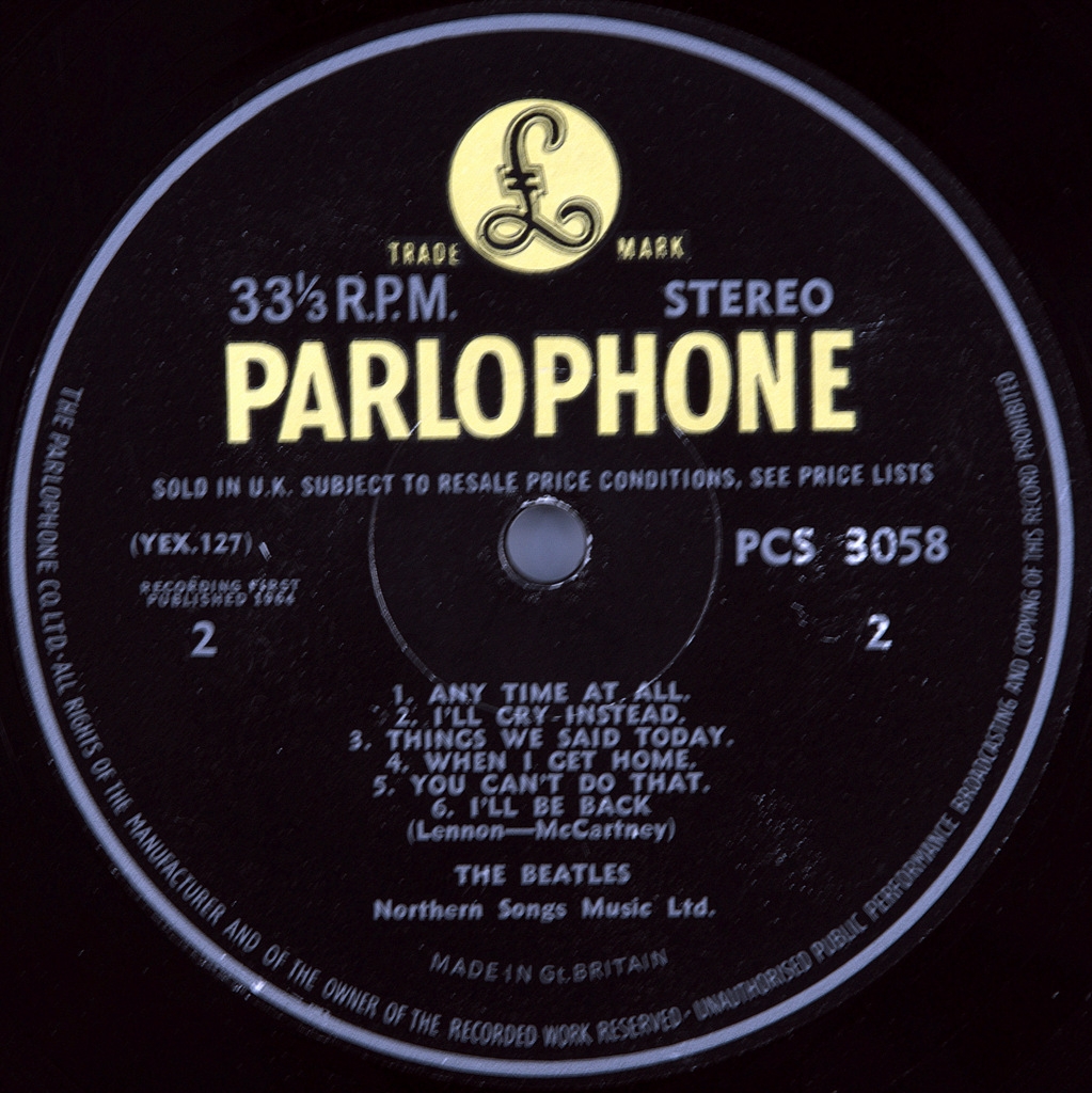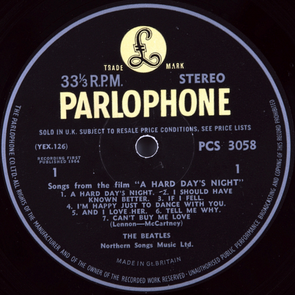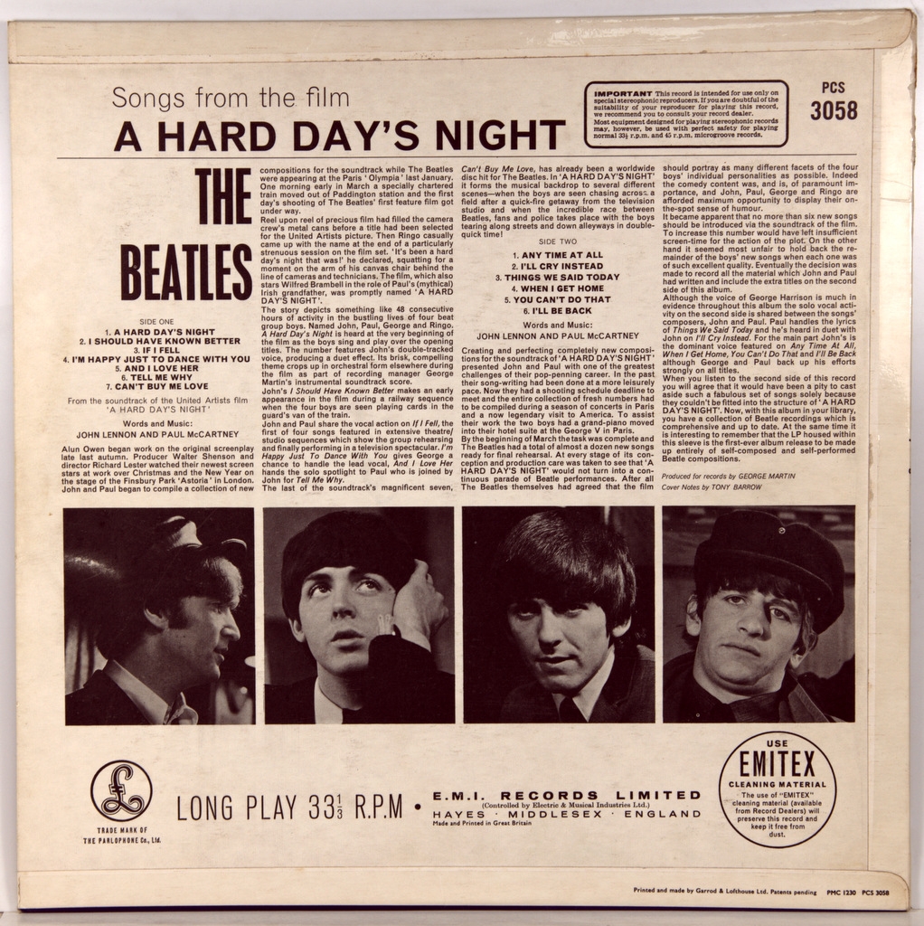BEATLES-A HARD DAY'S NIGHT (STEREO)-1964-ПЕРВЫЙ ПРЕСС UK-PARLOPHONE-номер PCS 3058 матрицы A1/B1 стампера 2AO/1GR