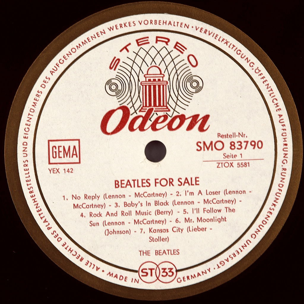 BEATLES-FOR SALE-1964-ПЕРВЫЙ ПРЕСС GERMANY-GOLD ODEON-номер SMO83790 матрицы A1/B1