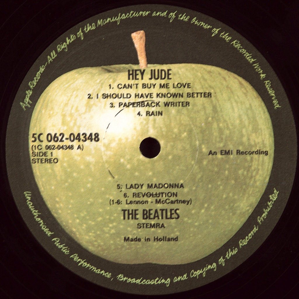 BEATLES-HEY JUDE-1970-ПЕРВЫЙ ПРЕСС HOLLAND-APPLE-номер 5с062-04348