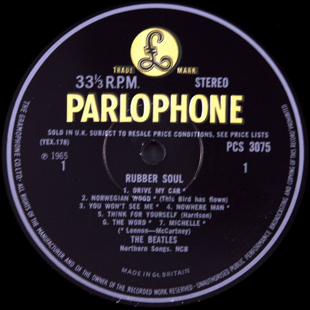 BEATLES-RUBBER SOUL(СТЕРЕО)-1965-ОРИГИНАЛ (ВТОРОЙ ПРЕСС) 1965 UK-PARLOPHONE-номер PCS3075 Матричные номера: Сторона 1: YEX 178-3; Сторона 2: YEX 179-3. стемпера 2GH/2GR