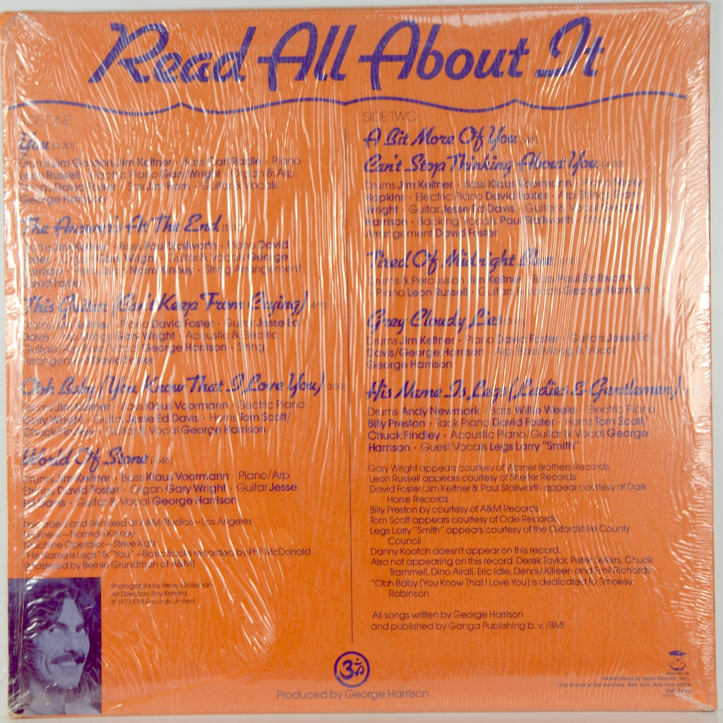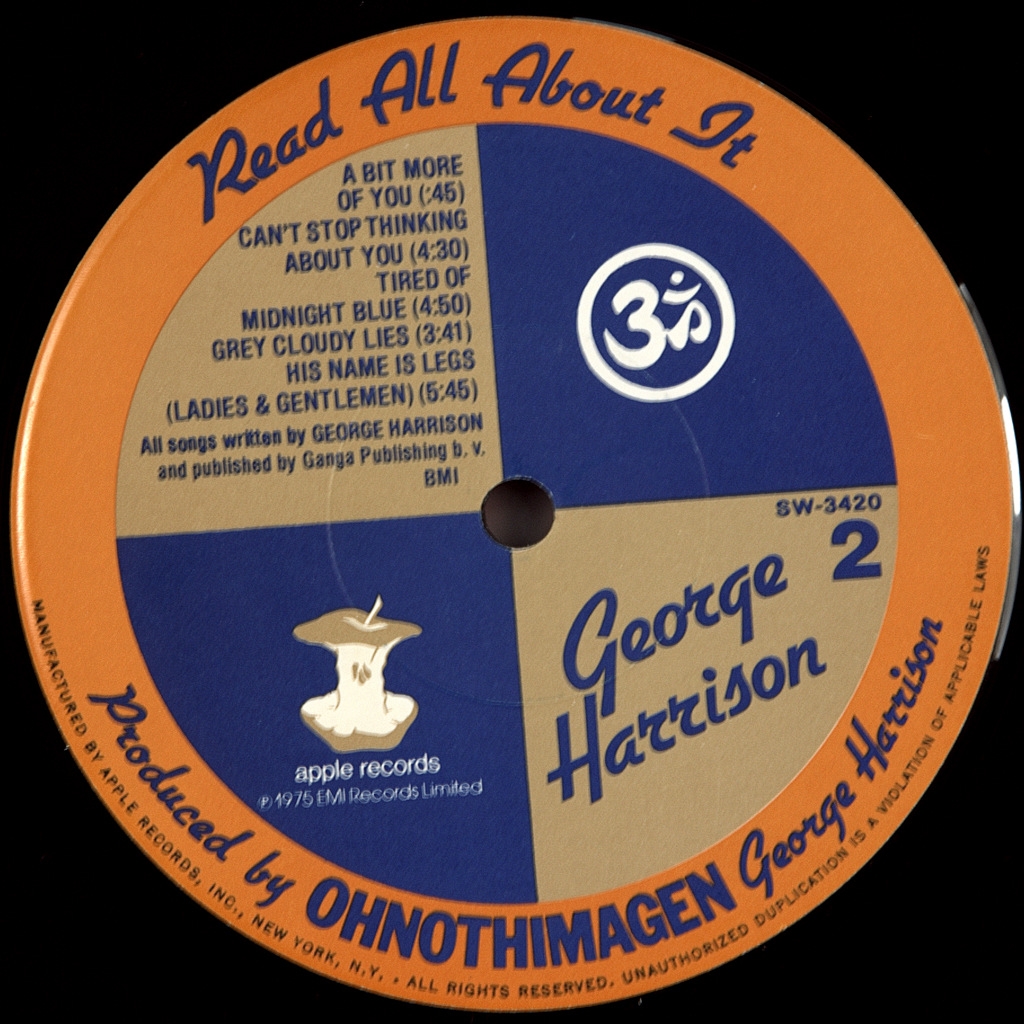 HARRISON, GEORGE-EXTRA TEXTURE-1975-ПЕРВЫЙ ПРЕСС USA-APPLE- номер SW-3420