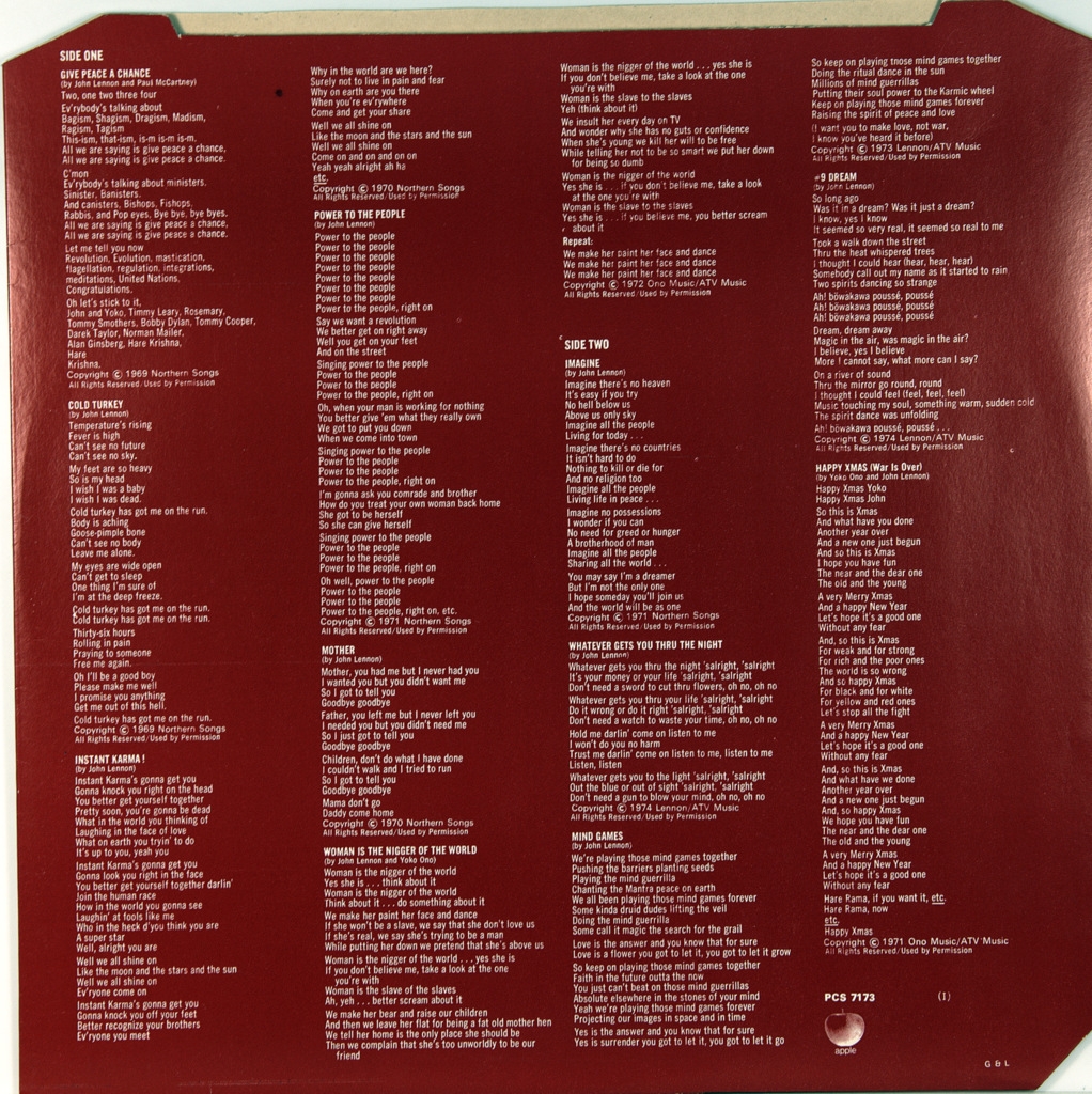 LENNON, JOHN (PLASTIC ONO BAND)-SHAVED FISH-1974-ПЕРВЫЙ ПРЕСС UK-APPLE-номер PCS7173 матрицы A1U/B1U стампера 2H/1RH