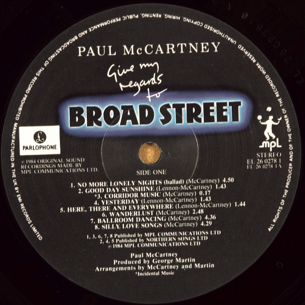 MCCARTNEY, PAUL-GIVE MY REGARDS TO BROAD STREET-1984-ПЕРВЫЙ ПРЕСС UK-PARLOPHONE-номер EL2602781