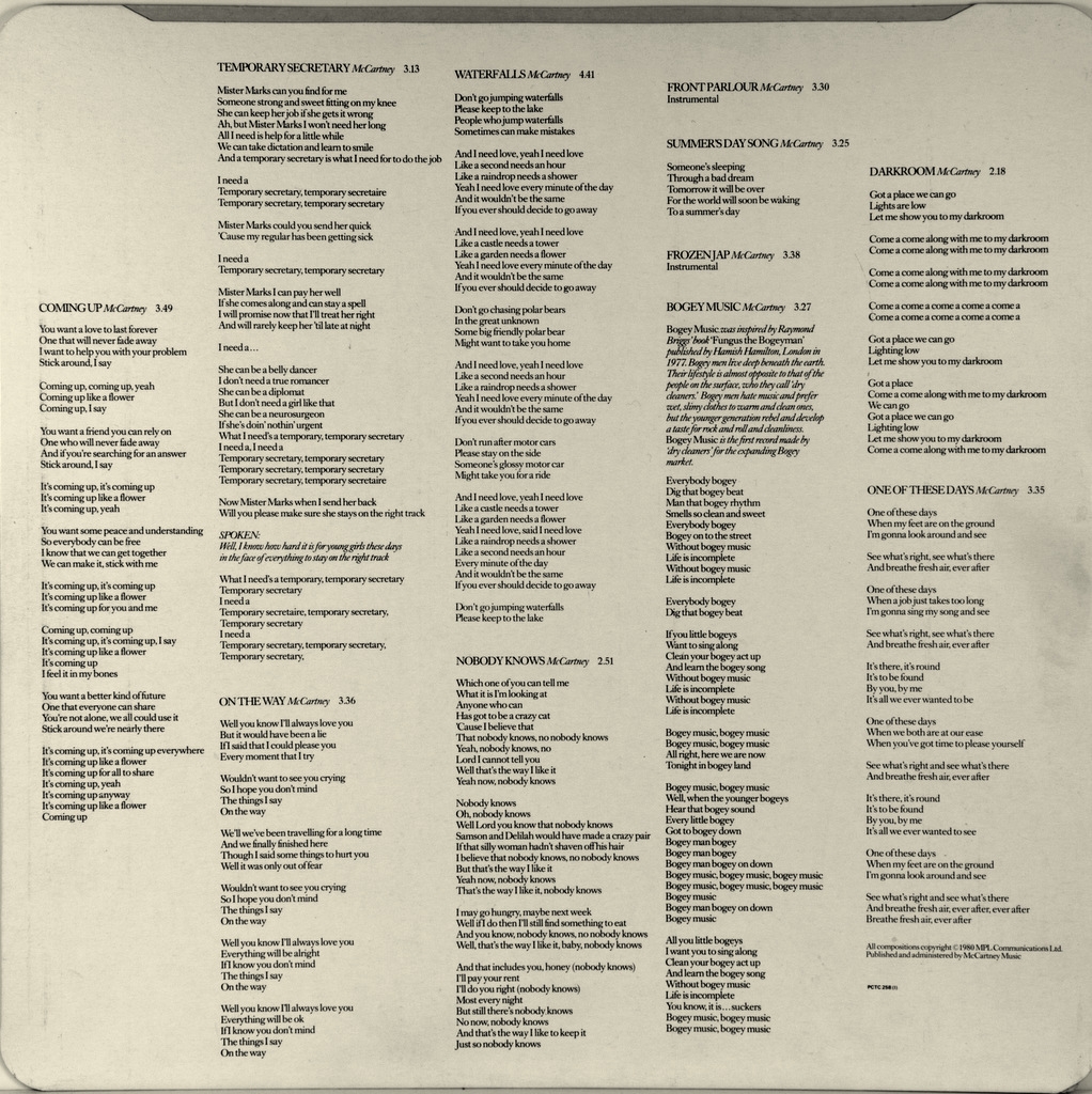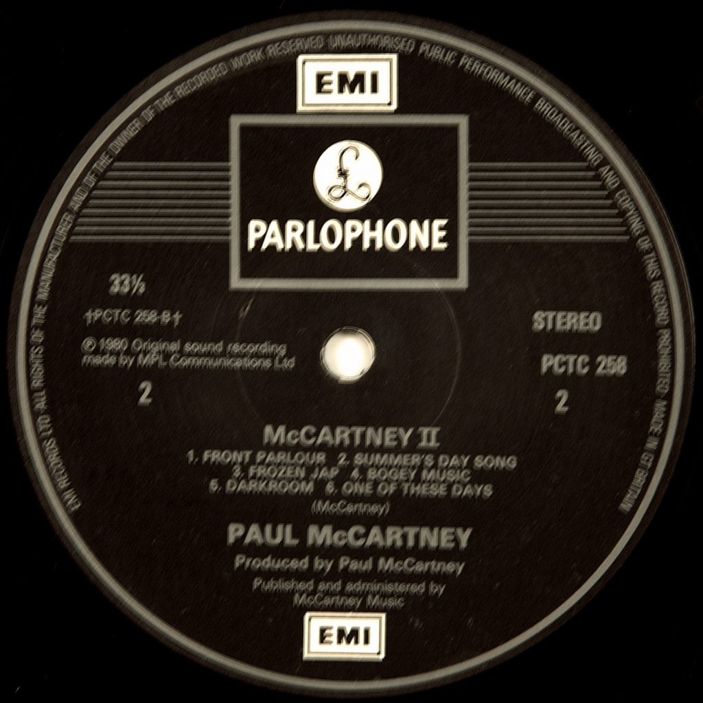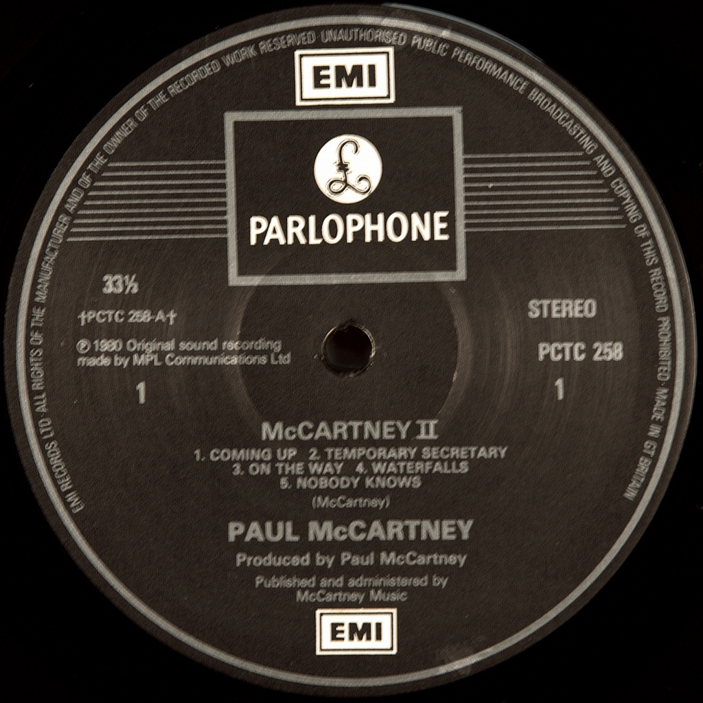 MCCARTNEY, PAUL-II-1980-ПЕРВЫЙ ПРЕСС UK-PARLOPHONE-номер PCTC258 матрицы A3/B3