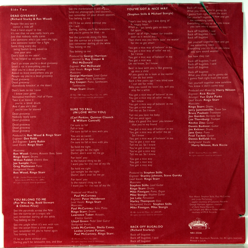 STARR, RINGO-STOP AND SMELL THE ROSES-1981-ПЕРВЫЙ ПРЕСС USA-BOARDWALK ENTERTAINMENT CO- номер NBI-33246