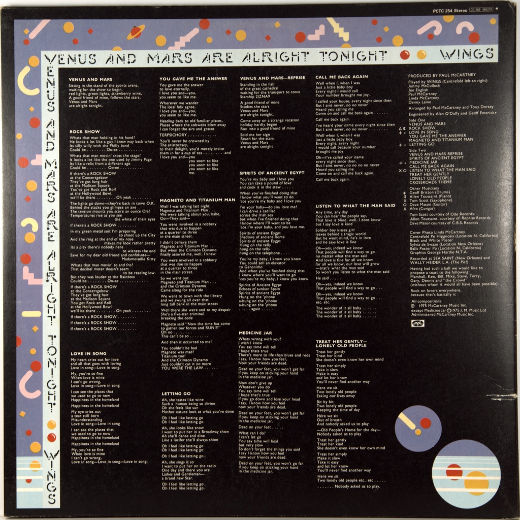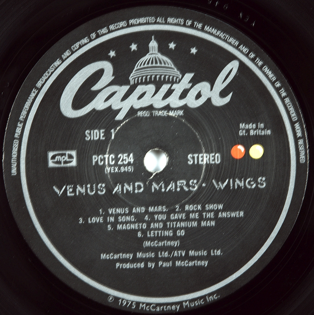 WINGS-VENUS AND MARS-1975-ПЕРВЫЙ ПРЕСС UK-CAPITOL номер PCTC254 матрицы A-3U/B-1U PORKY/ROOM стампера 1GPO/GHL.