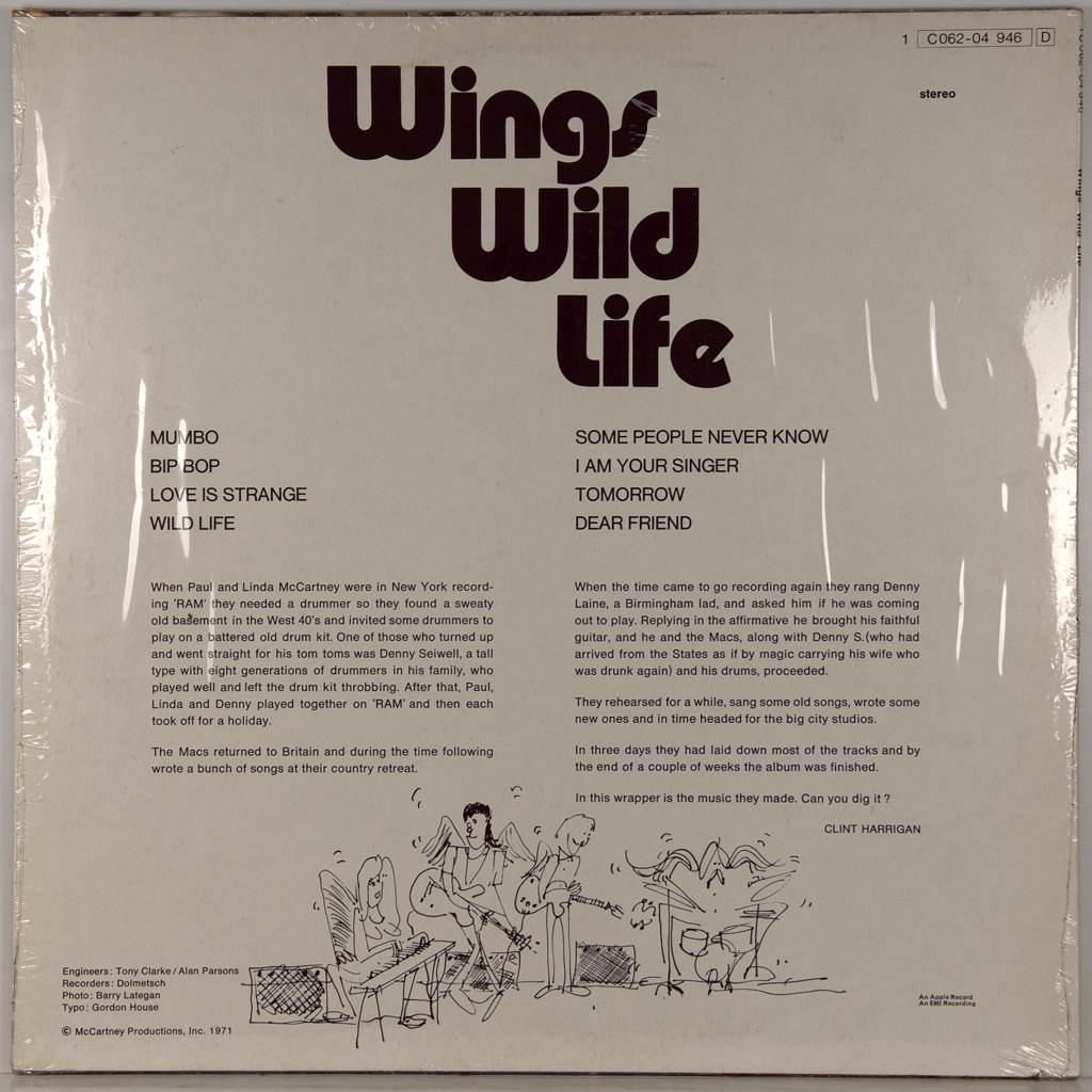 WINGS-WILD LIFE-1971-ПЕРВЫЙ ПРЕСС GERMANY-APPLE- номер 1C062-04946 матрицы A-2/B-1