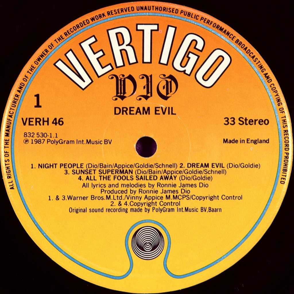 DIO-DREAM EVIL-1987-ПЕРВЫЙ ПРЕСС UK-VERTIGO-VERH46. Очень редкий британский оригинал известного фронтмена. Dream Evil — четвёртый студийный альбом группы Dio, вышедший 21 июля 1987 года.