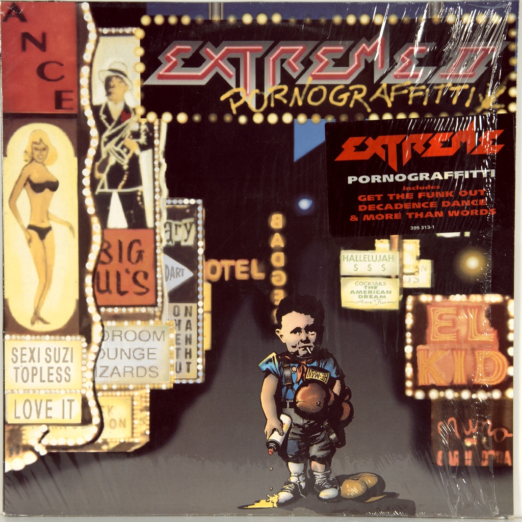 EXTREME II-PORNOGRAFFITTI-1990-ПЕРВЫЙ ПРЕСС HOLLAND-A&M номер 395313-1. Редкий европейский оригинал культового альбома. Extreme II: Pornograffitti (A Funked Up Fairy Tale) — второй студийный альбом американской рок-группы Extreme, вышедший в 1990 году. Название альбома представляет собой словослияние терминов «порнография» и «граффити». Альбом поднялся до 10-й позиции в Billboard 200 и стал золотым в мае 1991 года, а 26 октября 1992 года Американская ассоциация звукозаписывающих компаний присвоила Pornograffitti дважды платиновый статус; таким образом, это - наиболее продаваемый альбом группы. Сингл «More Than Words» вошел в Billboard Hot 100, заняв 1-ую позицию.