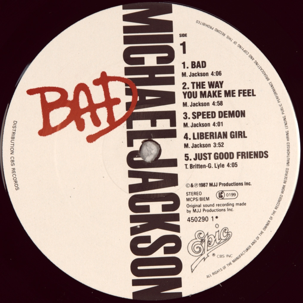 JACKSON, MICHAEL-BAD-1987-ПЕРВЫЙ ПРЕСС UK-EPIC номер 4502901. Редкий английский оригинал короля поп музыки в абсолютном состоянии.