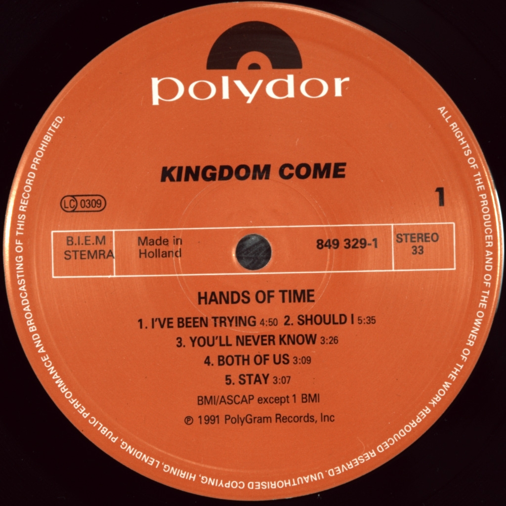 KINGDOM COME-HANDS OF TIME-1991-ПЕРВЫЙ ПРЕСС EU-HOLLAND-POLYDOR-849329-1. Третий альбом культовой группы LENNY WOLF. Несмотря на то что Lenny полностью записал альбом сам с сессионными музыкантами, рекорд компания и критики высоко оценили работу.
