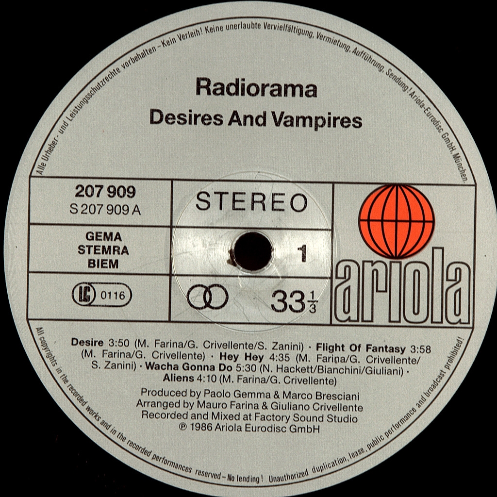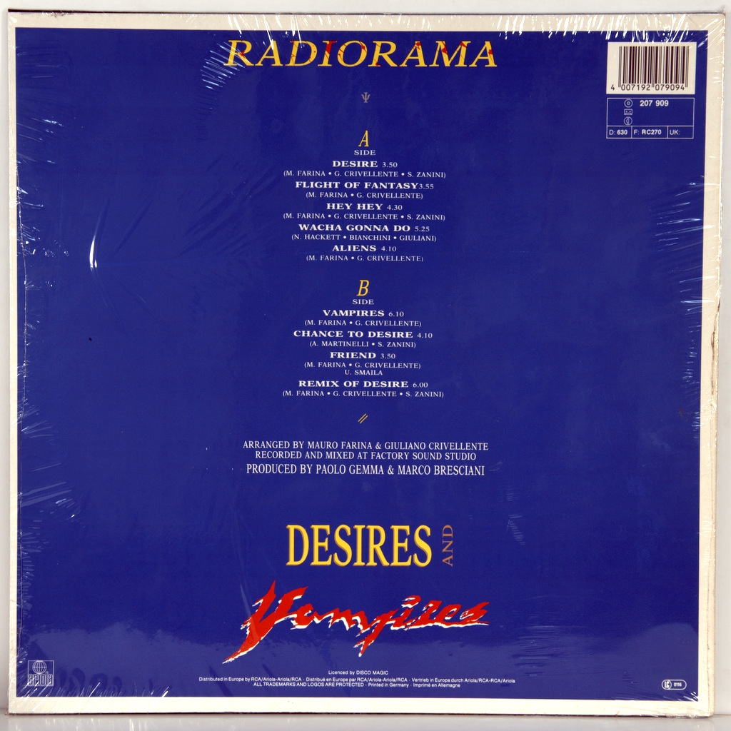 RADIORAMA-DESIRES AND VAMPIRES -1988-ПЕРВЫЙ ПРЕСС GERMANY-ARIOLA-207909. Мега редкий оригинал первого альбома культовой диско группы.