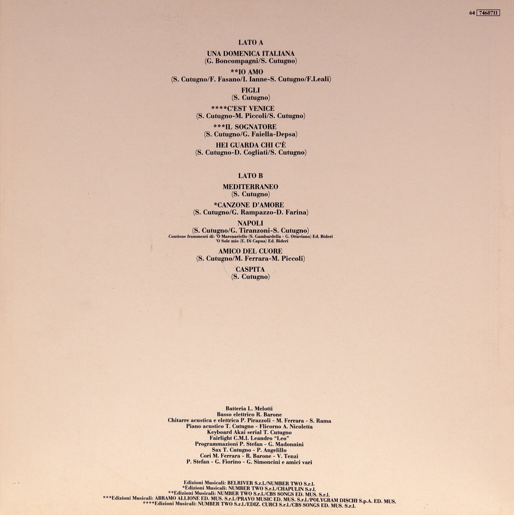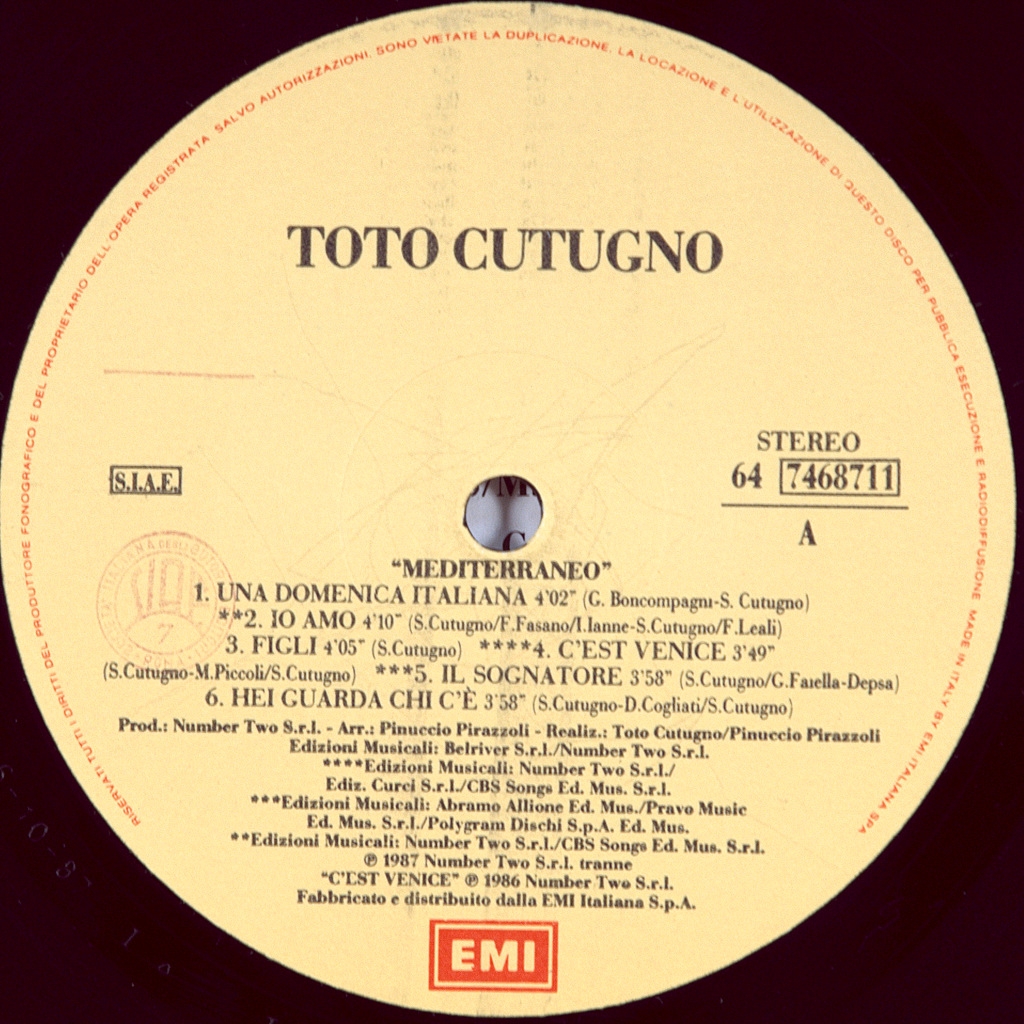 TOTO CUTUGNO-MEDITENANEO-1987-ПЕРВЫЙ ПРЕСС ITALY-EMI-64-7468711. Редкий итальянский оригинал звезды поп эстрады Италии. Альбом получился высокого качества а трек Figli занял второе место в Сан Ремо в 1988 году.
