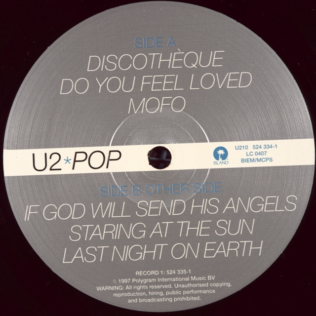 U2-POP-1997-(2LP'S)Первый пресс UK-ISLAND- U10 524334-1 матрицы A1/B1/C1/D1. Мега редкий британский оригинал культового альбома.