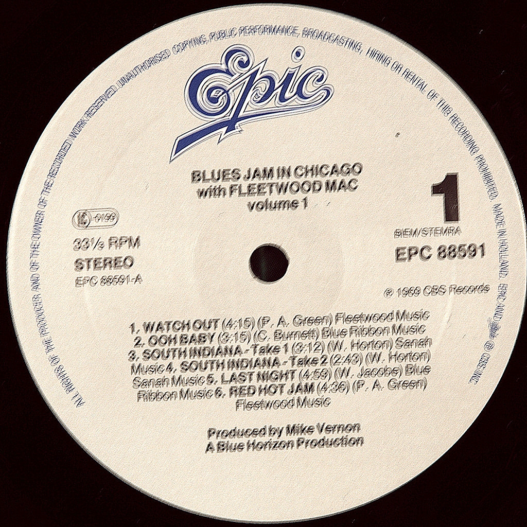 FLEETWOOD MAC-BLUES JAM IN CHICAGO (2LP)-1969-ИЗДАНИЕ 1982 HOLLAND-EPIC номер EPC88591. Редкое раннее издание культового альбома FLEETWOOD MAC с блюзовыми патриархами. Альбом получился исключительным и высоко оценен критиками и музыкантами. Членами Fleetwood Mac на момент записи альбома были Peter Green, Jeremy Spencer, Danny Kirwan, Mick Fleetwood и John McVie. Чикагские блюзовые музыканты, которые играли на этой сессии, были Otis Spann (фортепиано, вокал), Willie Dixon (акустический бас), Shakey Horton (гармоника, вокал), JT Brown (тенор-саксофон, вокал), Buddy Guy (гитара), Honeyboy Edwards (гитара) и S.P.Leary (ударные).