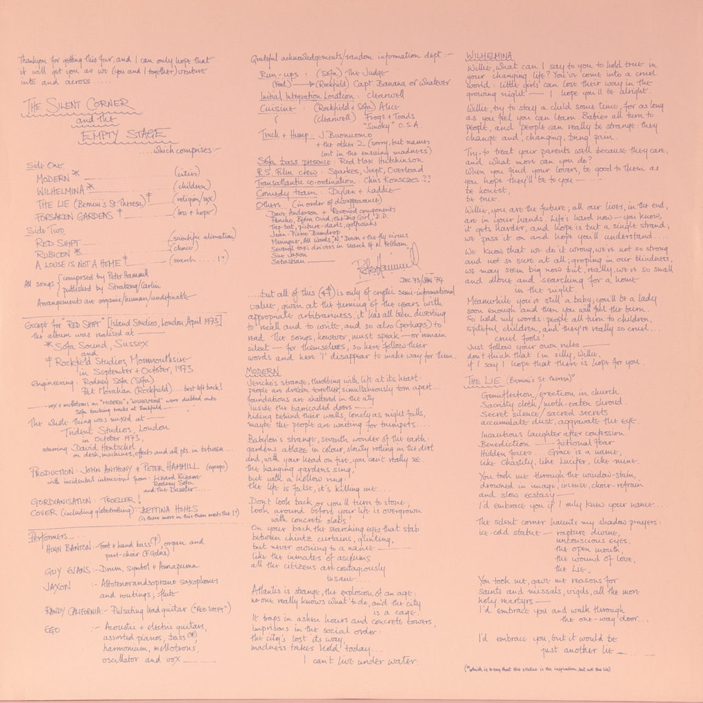 HAMMILL, PETER-THE SILENT CORNER AND THE EMPTY STAGE-1974- ОРИГИНАЛЬНЫЙ ПРЕСС 1975 UK-CHARISMA - CAS1083 Третий сольный альбом британского фронтмена VAN DER GRAAF- Peter Hammill. Он был выпущен на Charisma Records в 1974 году, во время перерыва в деятельности группы Van der Graaf Generator. Обложка была разработана Bettina Hohls , бывшей участницей психоделической немецкой рок-группы Ash Ra Tempel .