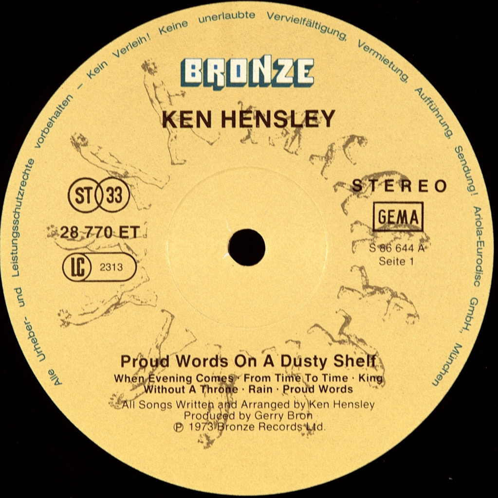 HENSLEY, KEN -PROUD WORDS ON A DUSTY SHELF-1973-ОРИГИНАЛЬНЫЙ ПРЕСС 1976- GERMANY-BRONZE-28770ET. Раннее оригинальное издание первого сольного альбома KEN HENSLEY (URIAH HEEP).