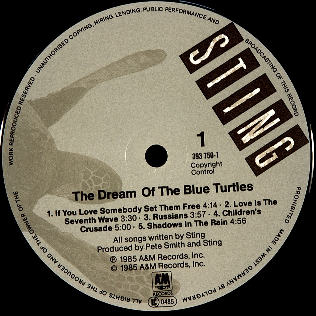 STING-DREAM OF THE BLUE TURTLES-1985-ПЕРВЫЙ ПРЕСС GERMANY-A&M номер DREAM1. Германский оригинал дебютного сольного альбома культового британского рок-музыканта. Трек "RUSSIANS" попал во все хит-парады, а STING стал знаменитостью.