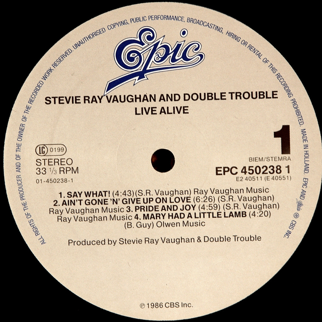 VAUGHAN, STEVE RAY AND DOUBLE TROUBLE -LIVE ALIVE-1986-ПЕРВЫЙ ПРЕСС UK/EU HOLLAND-EPIC-EPC450238-1. Редкий двойной оригинал блюзового мэтра. Live Alive - первый концертный альбом, составленный из четырех живых выступлений Стиви Рэя Воана и Double Trouble . Выступления были записаны 15 июля 1985 на джазовом фестивале в Монтре ; 17-18 июля 1986 в Оперном театре Остина; и 19 июля 1986 в Далласе Starfest. Большая часть альбома была перезаписана в студии.