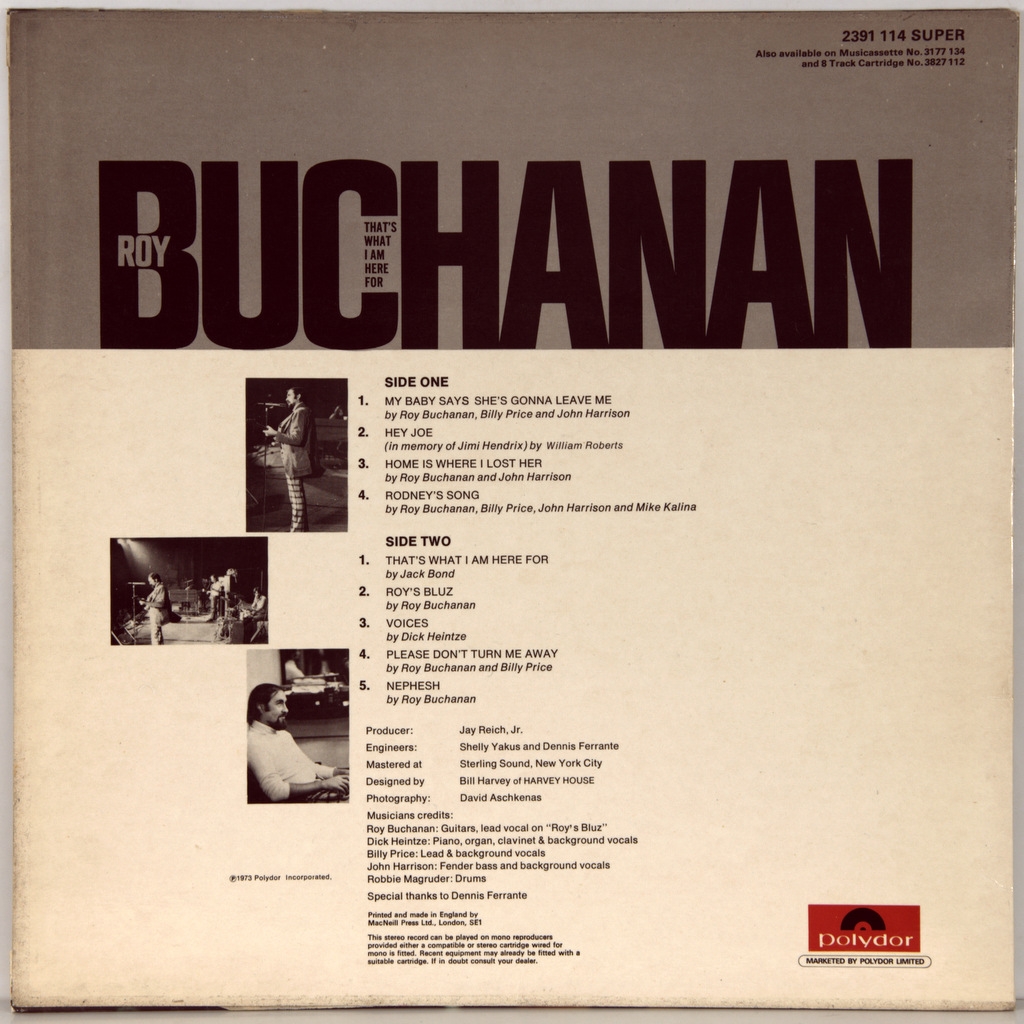 BUCHANAN, ROY-THAT'S WHAT I AM HERE FOR-1973-ПЕРВЫЙ ПРЕСС UK-POLYDOR - 2391114 .Матрицы A-1/B-1. Редкий британский оригинал одного из самых ярких блюзменов 70-х.