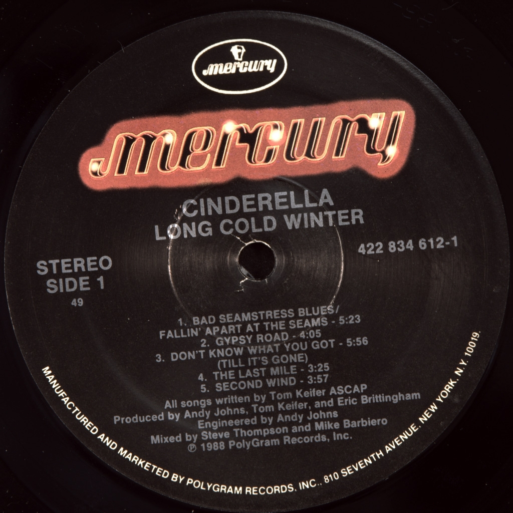 CINDERELLA-LONG COLD WINTER-1988-Первый пресс USA-MERCURY- 422834612-1. Long Cold Winter-второй альбом студийный альбом американского хард/блюз/глэм-группы Cinderella. Запись достигла 10-го места в национальном чарте США и дважды стала платиновой.