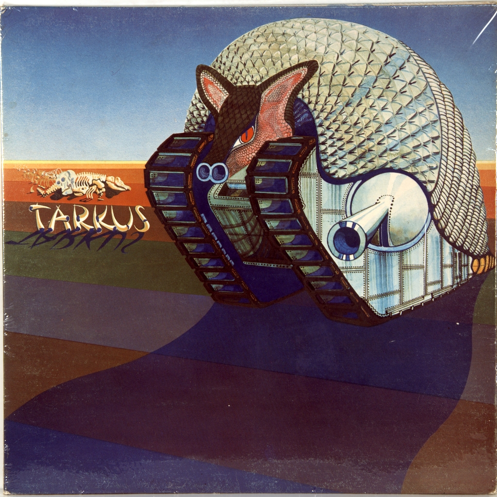 EMERSON, LAKE & PALMER- TARCUS-1971-ПЕРВЫЙ ПРЕСС UK-ISLAND - ILPS-9155. Матрицы A-1U/B-1U. Стампера 1TG/1GGM. Tarkus - второй студийный альбом британской рок-группы Emerson, Lake & Palmer, выпущенный в 1971 году. Таркус - фантастический киборг, наполовину броненосец, наполовину танк, изображённый на обложке альбома. На внутреннем развороте альбома содержится последовательность картинок борьбы Таркуса с другими полумеханическими созданиями, заканчивающаяся победой мантикоры. Диск занял 9-е место в американском чарте Billboard 200 .