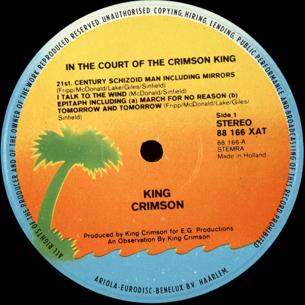 KING CRIMSON- IN THE COURT OF THE CRIMSON KING-1969-ОРИГИНАЛЬНЫЙ ПРЕСС 1975-HOLLAND-ISLAND-88166XAT. In the Court of the Crimson King — дебютный альбом британской группы King Crimson, выпущенный в 1969 году. Альбом занимает пятое место в списке Топ-25 лучших альбомов прогрессивного рока по версии Progarchives.com. Этот диск оказал важное и необычайно сильное влияние на развитие психоделического рока, прогрессивного рока и хэви-метал. Альбом записан с исключительной музыкальностью, поэтикой текстов. В то время как одни рок-группы (например, Pink Floyd) были склонны к сочинению длинных композиций, а другие пытались вместить в рок-песню свободу джазовой формы (Фрэнк Заппа), в In the Court of the Crimson King группа использовала причудливую поэзию блейковских кошмаров, видений и предчувствий. Группу всегда относили к так называемому жанру «интеллигентного тяжёлого металла», и первый же их альбом создал этот жанр, а также продвинул музыкальную мысль вперёд сразу по нескольким фронтам. Альбом открывается композицией «21st Century Schizoid Man», характерной чертой которой является использование сильно искажённого вокала, нарочито монотонного механического ритма, пронзительно громкого саксофона и гитары. Ритм, заданный первой композицией, внезапно сменяется мягким мелодическим спокойствием «I Talk to the Wind». Воздушная психоделическая пьеса «Moonchild» завершается импровизацией свободной формы. И в «Epitaph» и в заглавной «The Court of the Crimson King» » группа использовала в оркестровке меллотрон.