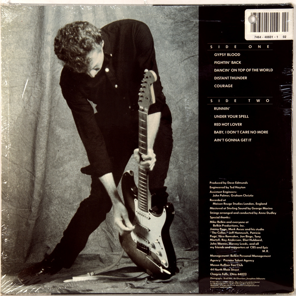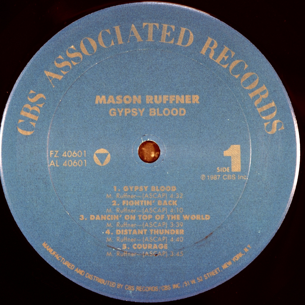 MASON RUFFNER-GYPSY BLOOD-1987-ПЕРВЫЙ ПРЕСС USA-COLUMBIA-FZ40601. Редкий оригинал американского блюзового гитариста Mason Ruffner. 1987 году выпустил Gypsy Blood, который был произведен Дэйвом Эдмундсом . альбом достиг № 80 в Billboard 200 .Сингл, "цыганская кровь" достиг № 11 в чарте Billboard Hot Mainstream Rock Tracks . Виниловая пластинка в топ состоянии- NMINT/ARCHIVE . Обложка матовая в топ состоянии с промо холом - NMINT/ARCHIVE Лейблы в топ состоянии- NMINT/ARCHIVE