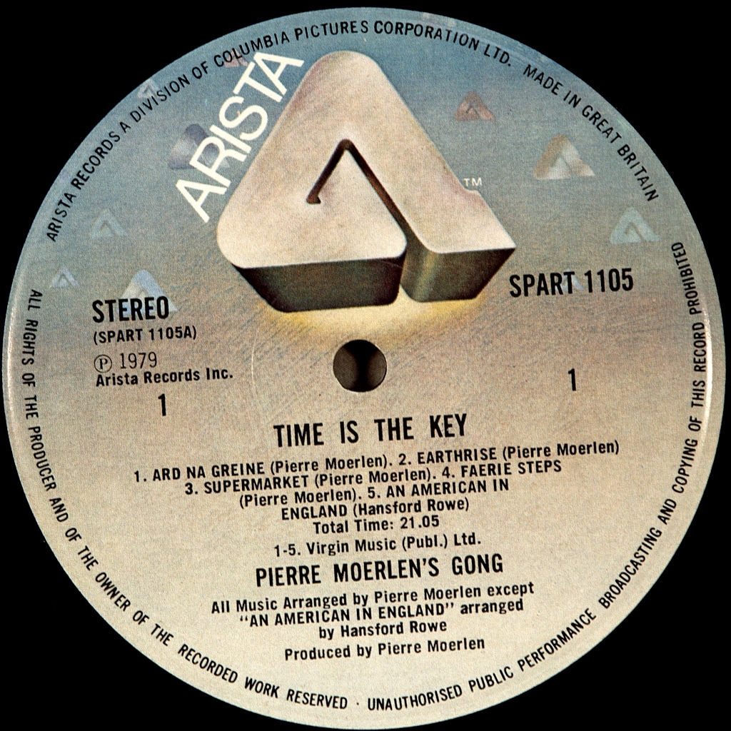 PIERRE MOERLEN'S GONG-TIME IS THE KEY-1979-ПЕРВЫЙ ПРЕСС UK-ARISTA-SPART1105 Матрицы A-1//T11,B-1//T11 . Редкий британский оригинал прогрессивного альбома.Pierre Moerlen’s Gong — рок-группа, трансформировалась из оригинального состава Gong после того, как группу покинул её основатель Дэвид Аллен.В 1972 году место за барабанами «Гонга» занял Пьер Мерлен — выпускник Страссбургской консерватории. С его участием были выпущены диски: «Angel`s Egg», «You», «Shamal». После того, как основатель группы покинул её, контроль над коллективом постепенно переходит к Мерлену. Под его влиянием Гонг трансформируется к исполнению архитектурно-стройного джаз-рока с развёрнутой ударной секцией. Ещё под названием «Гонг» выходит два диска «Gazeuse» и «Expresso II», которые фактически являются первыми работами группы Пьера Мерлена.