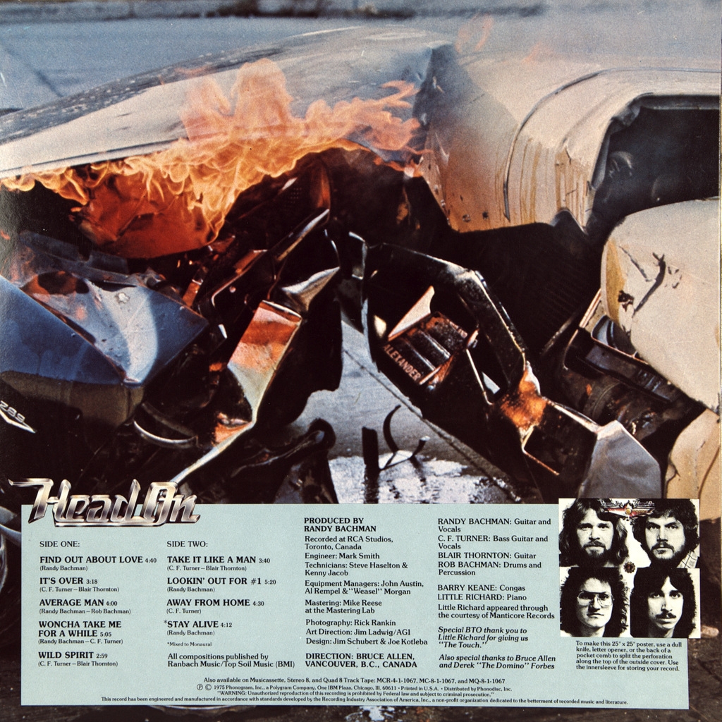 BACHMAN-TURNER OVERDRIVE-HEAD ON-1975-ПЕРВЫЙ ПРЕСС USA-MERCURY-SRM-1-1067. Head On -пятый студийный альбом канадской рок-группы Bachman-Turner Overdrive , выпущенный в декабре 1975 года. Альбом высоко оценен критиками и фанатами, по версии Billboard 200 в 1976 году альбом занял 23 место.