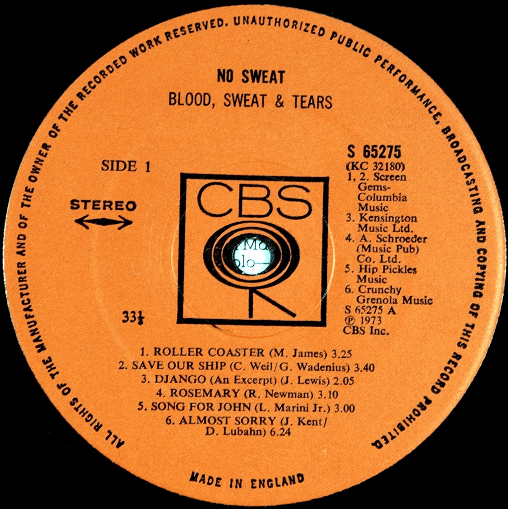 BLOOD, SWEAT & TEARS-NO SWEAT-1973-ПЕРВЫЙ ПРЕСС UK CBS -S65275. Редкий британский оригинал.