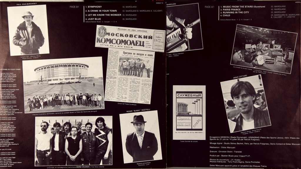 MAROUANI,DIDIER & PARIS-FRANCE-TRANSIT-CONCERT USSR-1983-ПЕРВЫЙ ПРЕСС FRANCE-VOGUE-406507, Мега редкий альбом основателя группы SPACE. Concerts en URSS (Концерты в СССР)— первый «живой» альбом Дидье Маруани и ансамбля Paris-France-Transit с концертов, которые проходили в 1983 году в СССР — в Москве, Ленинграде и Киеве. Альбом на двух дисках включает в себя как треки с альбома 1982 года, так и более ранние записи Space. Альбом вышел на «виниле», аудио- и видеокассетах. За 2 года до приезда в СССР с группой музыканты Доминик Перрье и Роже Риззители побывали в социалистическом лагере, а в 1981 году они вместе с Жаном-Мишелем Жарром приезжали в Китай с серией из 5 концертов. В 1980 году 1-й заместитель министра культуры СССР Юрий Барабаш находясь во Франции встретился с композитором Дидье Маруани и предложил ему провести серию концертов в СССР, и летом 1983 года Дидье Маруани вместе со своей группой дали турне из 21 концерта. Представления посетили около 600.000 зрителей. После концертов Маруани окрестили «маленьким принцем синтезатора». После гастролей на фирме «Мелодия» с опозданием на 6 лет вышла пластинка «Волшебный полёт».