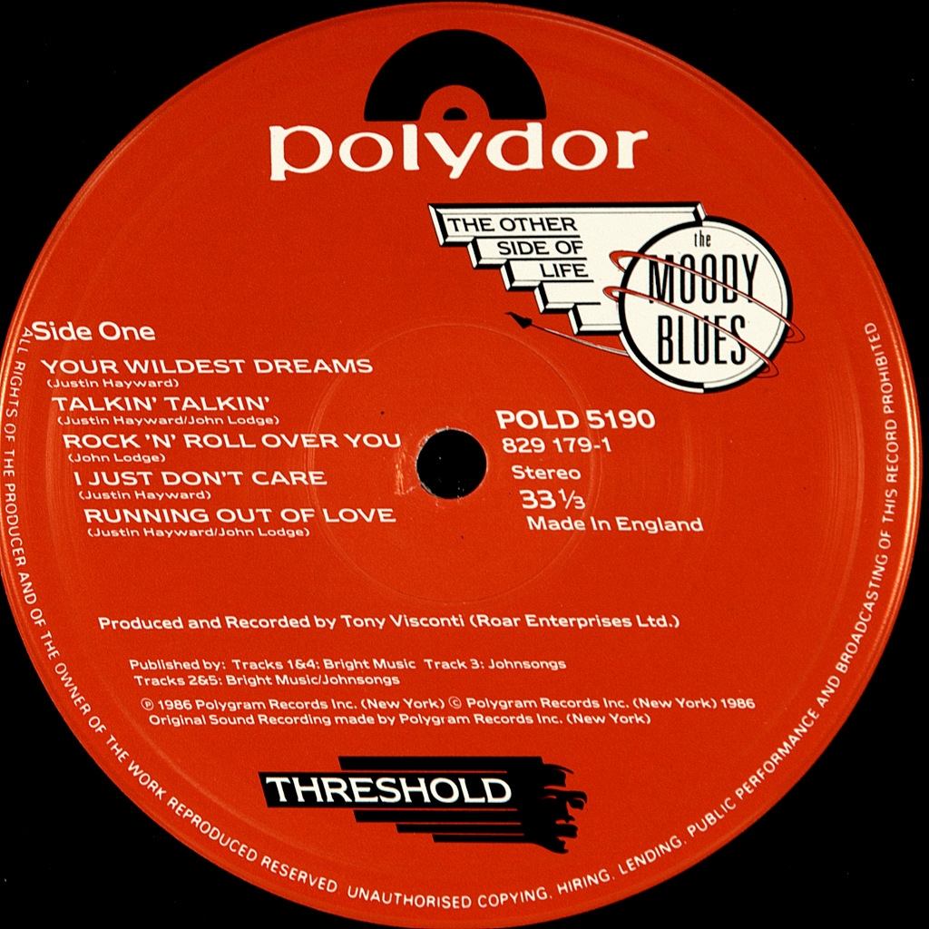 MOODY BLUES-THE OTHER SIDE OF LIFE-1986-ПЕРВЫЙ ПРЕСС UK-POLYDOR-POLD5190. Редкий британский оригинал. Двенадцатый студийный альбом британской прогрессив рок-группы The Moody Blues, выпущенный лейблом Polydor Records в апреле 1986 года. Альбом содержит один из хитов группы - композицию «Your Wildest Dreams», которая попала в список Top-10 в США.