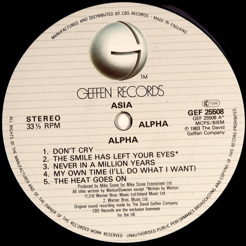 ASIA-ALPHA-1983-ПЕРВЫЙ ПРЕСС UK-GEFFEN-GEF25508. Очень редкий британский оригинал прог группы Asia. Alpha - это второй студийный альбом британской рок-группы Asia , выпущенный 26 июля 1983 года в США и 12 августа 1983 года в Великобритании лейблом Geffen. Записанный в Le Studio в Morin-Heights, Квебек и Manta Sound в Торонто с февраля по май 1983 года, этот альбом, как и его многоплатиновый предшественник ,был продюсирован Mike Stone. Обложка была разработана Роджером Дином (Roger Dean) , известным своей работой с Yes.