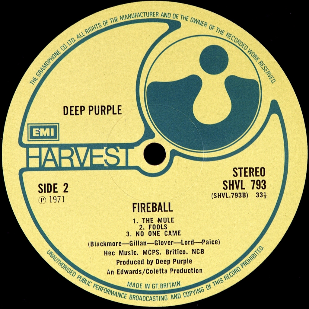 DEEP PURPLE-FIREBALL-1971-ПЕРВЫЙ ПРЕСС UK-HARVEST - SHVL793 Матрицы A-2U/B-3U Очень редкий британский ориинал с первыми матрицами. Fireball — пятый студийный альбом британской рок-группы Deep Purple. Вышел в свет в сентябре 1971 года. По сравнению с Deep Purple in Rock, этот альбом был записан в более экспериментальном стиле. Allmusic назвал его одним из четырёх важнейших альбомов группы, наряду с Machine Head, In Rock и Burn