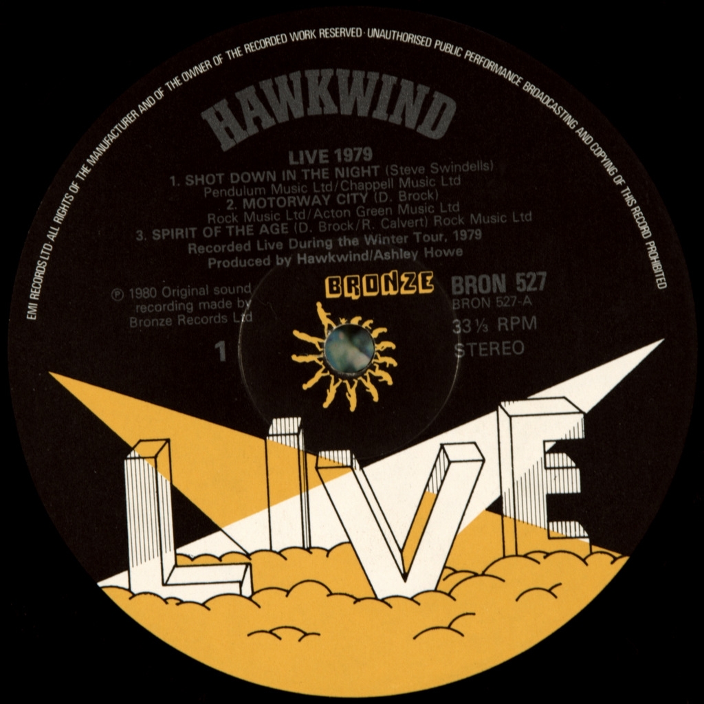HAWKWIND-LIVE SEVENTY NINE-1980-ПЕРВЫЙ ПРЕСС UK-BRONZE BRON527. Матрицы A-1U/B-1U. Редкий британкий оригинал культовой прог группы. Live Seventy Nine - концертный альбом 1980 года Hawkwind, записанный в их зимнем туре 1979 года. Он достиг # 15 в чарте альбомов Великобритании.