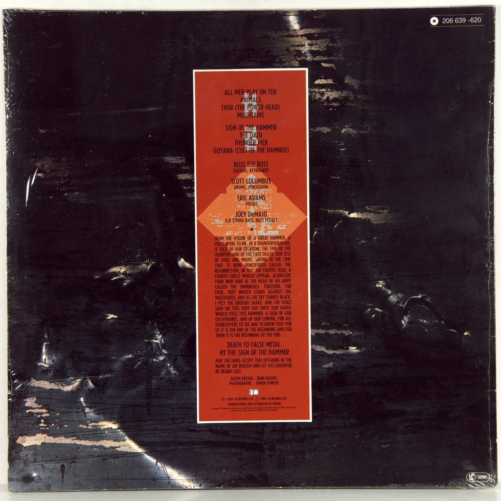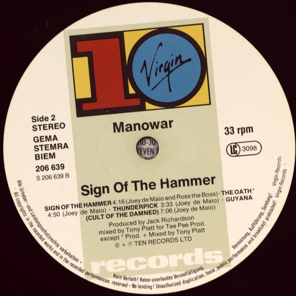 MANOWAR-SIGN OF THE HAMMER-1984-ПЕРВЫЙ ПРЕСС -GERMANY-10 RECORDS-206639-620. Редкий европейский оригинал культовой хэви группы. Sign of the Hammer- четвёртый студийный альбом американской рок-группы Manowar, вышедший в 1984 году. Это первый и единственный альбом, выпущенный группой на лейбле 10 Records. Sign of the Hammer рассматривается многими фанатами Manowar как последний альбом, сделанный группой до того, как они изменили стиль на более прямой и менее эпический.