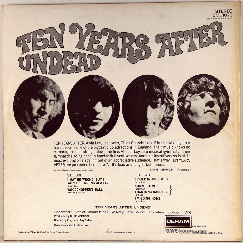 TEN YEARS AFTER-UNDEAD-1968-ПЕРВЫЙ ПРЕСС UK-DERAM-SML1023. Матрицы A-1W/B-1W. Очень редкий оригинал блюзовых грандов. UNDEAD- второй альбом , группа решила записать «живьем», это произошло в лондонском джаз-клубе Klook's Kleek в мае 1968-го года. Альбом добрался до 115 строчки в 1968 Billboard 200.