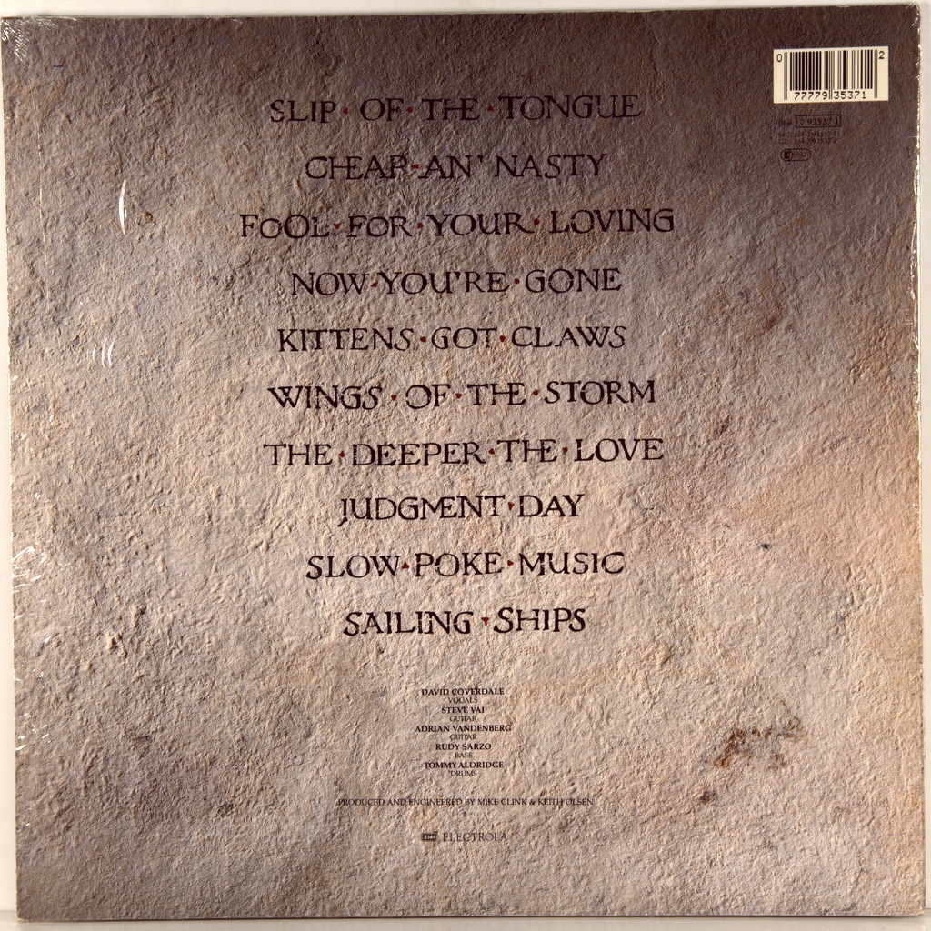 WHITESNAKE-SLIP OF THE TONGUE-1989-ПЕРВЫЙ ПРЕСС GERMANY-EMI 064-7935371. Slip of the Tongue - это восьмой студийный альбом британской хард-рок- группы Whitesnake , выпущенный в 1989 году. Альбом занял 10-е место на британском чарте альбомов и американском Billboard 200.