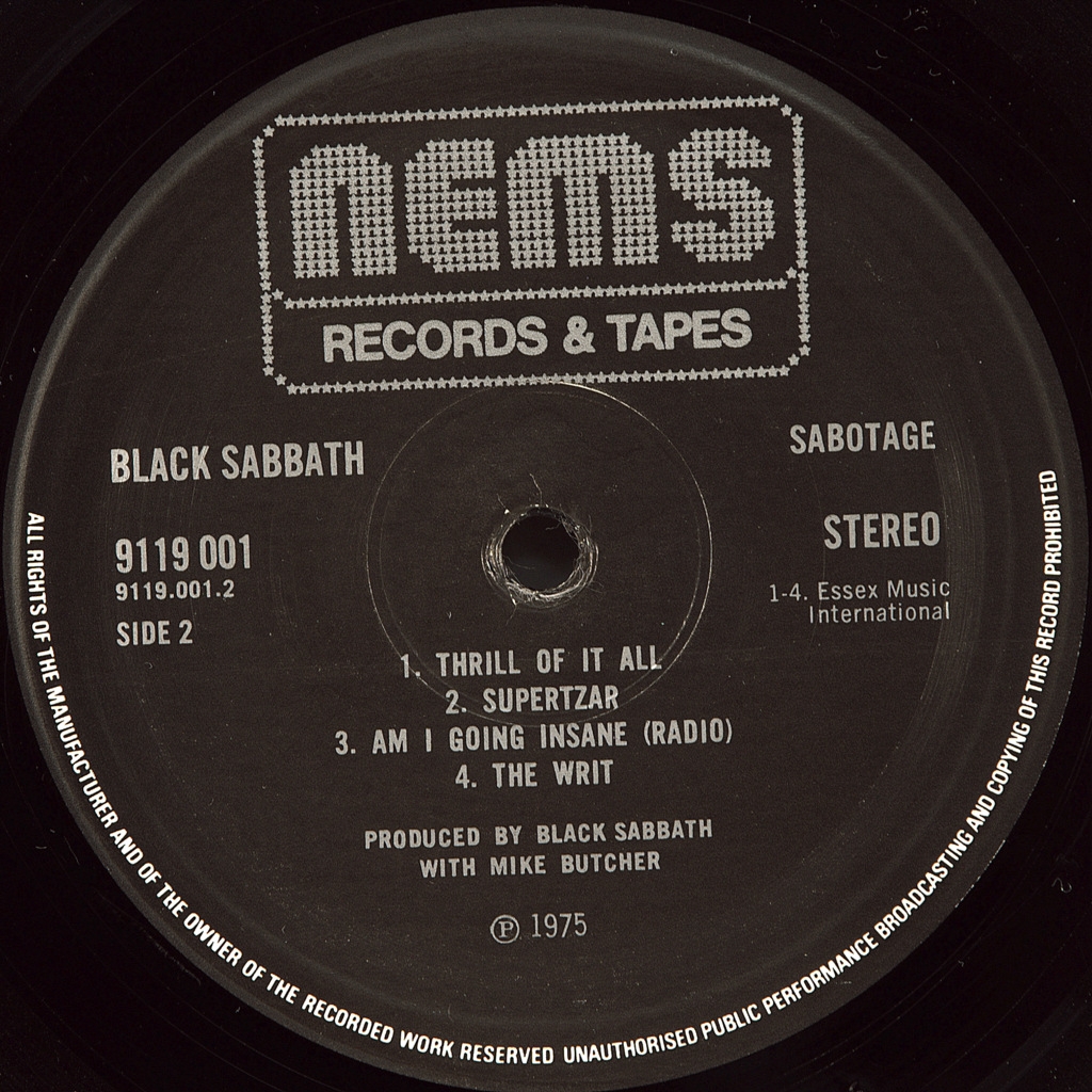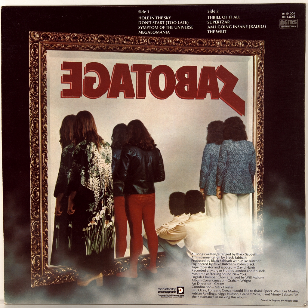 BLACK SABBATH-SABOTAGE -1975- ПЕРВЫЙ ПРЕСС UK-NEMS-9119001. Матрицы A-1//2, B-2//1. Мега редкий британский оригинал одного из ключевых альбомов великой группы. Sabotage — шестой студийный альбом британской хеви-метал-группы Black Sabbath, выпущенный 28 июля 1975 года NEMS Records (Warner Bros. Records — в США и Канаде). Альбом поднялся до №7 в UK Albums Chart и до №28 в Billboard 200
