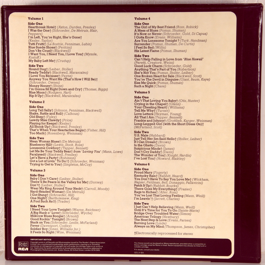ELVIS PRESLEY-GREATEST HITS (1956-1977 BOX-7 LP'S)-1978-ПЕРВЫЙ ПРЕСС UK-READER'S DIGEST -GELV-6A.. Редкий английский оригинал 'ELVIS PRESLEY GREATEST HITS' - подарочный бокс с шедевральной подборкой 100 суперхитов на семи пластинках! В открытую продажу издание не поступало, а распространялось только строго среди счастливых подписчиков журнала 'Reader's Digest'. Elvis Presley's Greatest Hits — сборник хитов Элвиса Пресли, можно сказать "собрание сочинений", выпущенное журналом Reader's Digest и RCA Records в 1978 году, на годовщину смерти "короля рок-н-ролла". Издание вышло в шести томах-пластинках, однако в том же году выпустили седьмую пластинку которую стали вкладывать в эту коробку. Седьмой диск — Elvis in the Movies — посвятили песням, записанным Пресли для различных кинофильмов. Всё собрание упаковано в коробку, в комплекте идёт иллюстрированный 14-страничный буклет с биографией певца.
