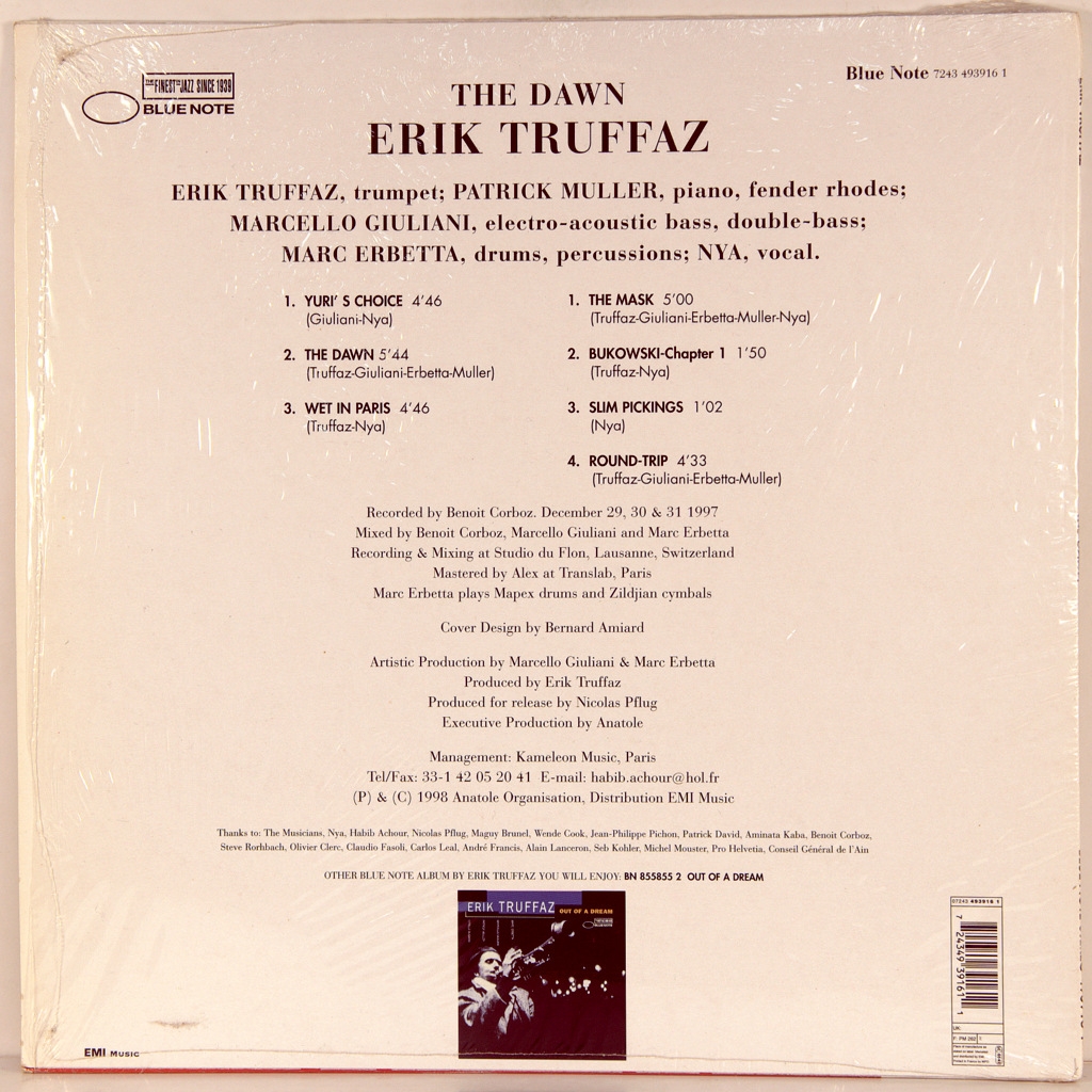 ERIK TRUFFAZ-THE DAWN-1998-ПЕРВЫЙ ПРЕСС FRANCE-BLUE NOTE-BN4939161. Очень редкий оригинал (единственное издание в мире) , культового альбома в современном джазе. Эрик Труффаз (; род.3 апреля 1960 года в Шен-Бугери , Швейцария) - французский джазовый трубач , вливающий элементы хип-хопа , рок-н-ролла и танцевальной музыки в свои композиции. Он подписал контракт с французским лейблом EMI в 1996 году. второй альбом Труффаза на Blue Note , The Dawn , спродюсированный вместе с Патриком Мюллером, Марчелло Джулиани и Марком Эрбеттой . С тех пор они выпустили много альбомов Blue Note вместе , таких как Bending New Corners, который стал серебряным альбомом во Франции. Релиз 2007 года представляет собой смесь поп-песен, французского шансона и джаз - Грува . В 2007 году он и Эд Харкорт появился в видеосессии Take-Away Show, снятой Винсентом Муном .