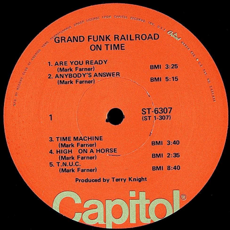 GRAND FUNK RAILROAD-ON TIME-1969-ОРИГИНАЛЬНЫЙ ПРЕСС 1974 USA-CAPITOL-ST-6307. Редкое раннее издание культового первого альбома. On Time — дебютный студийный альбом хард-рок-группы Grand Funk Railroad, выпущенный в августе 1969 года на лейбле Capitol Records. Первый сингл группы из этого альбома — «Time Machine» едва сумел пробиться в хит-парад 50 лучших синглов, достигнув 48 позиции, но после успеха их второго альбома Grund Funkruen (также известного под названием The Red Album), в 1970 году пластинка On Time получила статус золотой — это один из четырёх золотых сертификатов, присвоенных группе в тот год Американской ассоциацией звукозаписывающих компаний.